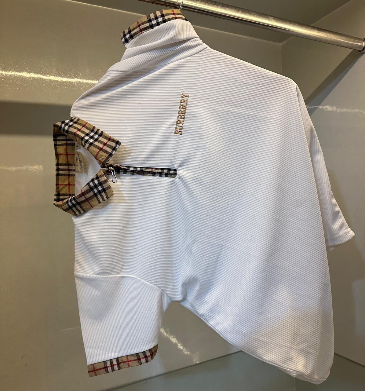 Authentic Burberry Men's Polo T-Shirt – Iconic Check Collar, Classic Black